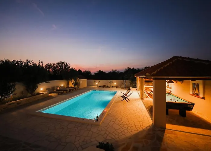 别墅内的厨房有微波炉,洗碗机和洗衣机.Luka别墅别墅位于距离札达尔机场大约20公里的地方.现场有公共休息室和花园.